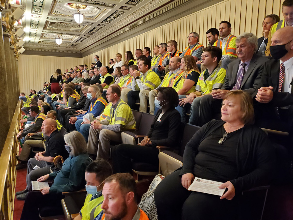 More than 100 supporters of transportation funding gathered at the event in the Missouri Capitol. Following a briefing and introduction on the House floor, the group individually visited their elected representatives to garner support for SB 262. Chair of the House Transportation Committee Rep. Becky Ruth introduced the group to the Missouri House.